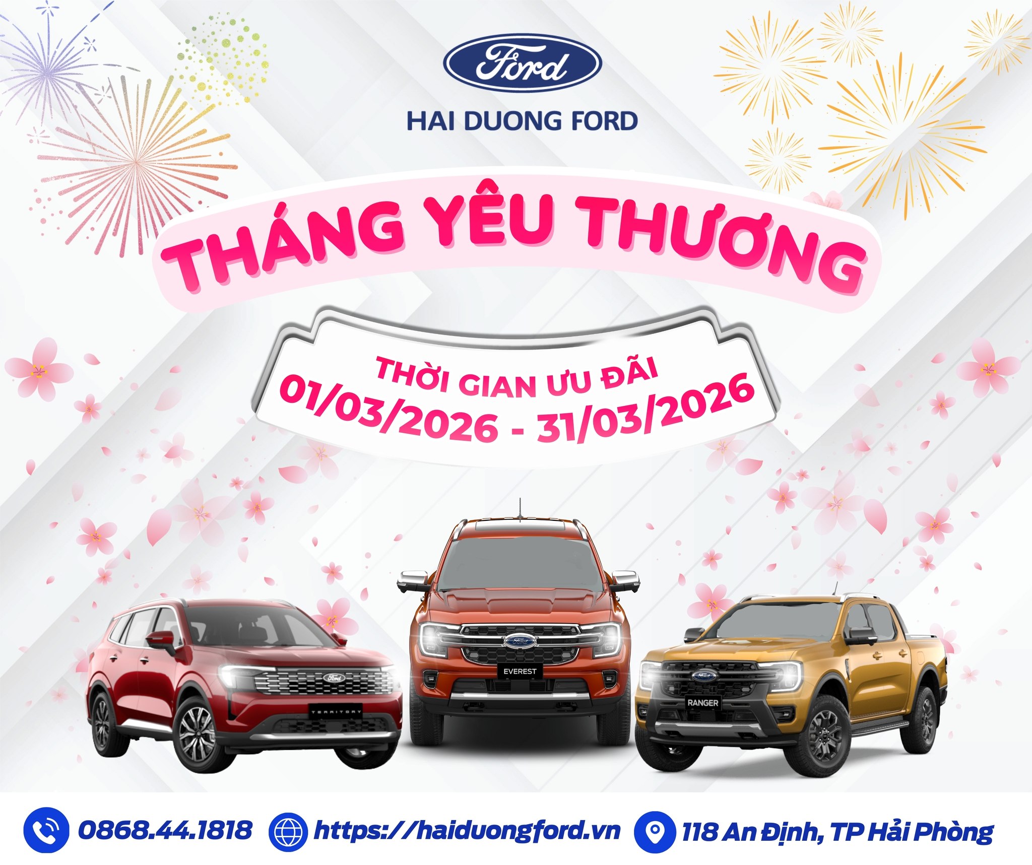 Tháng Ba ghé đến mang theo sự dịu dàng, đong đầy cảm xúc yêu thương, đặc biệt đây cũng là tháng tôn vinh những người phụ nữ tuyệt vời của chúng ta. Nhân dịp đặc biệt này, Hải Dương Ford xin gửi đến các khách hàng làm dịch vụ tại Đại lý từ ngày 01/03/2026 đến ngày 31/03/2026 chương trình Khuyến mại dịch vụ với ưu đãi vô cùng hấp dẫn thay cho lời cảm ơn và lời chúc yêu thương đến một nửa thế giới: